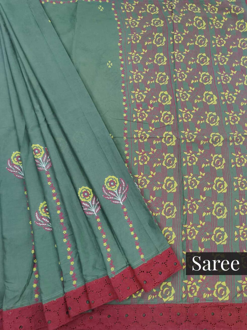 Saree Colour: Olive green